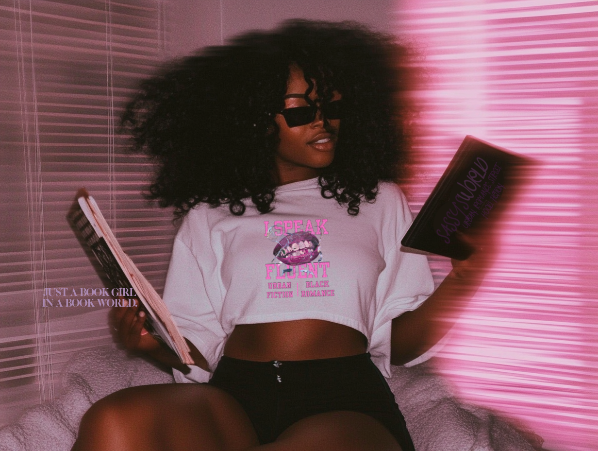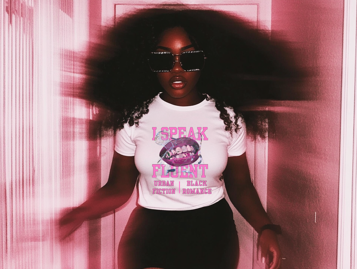 The pink 'I SPEAK FLUENT URBAN FICTION | BLACK ROMANCE' Tee